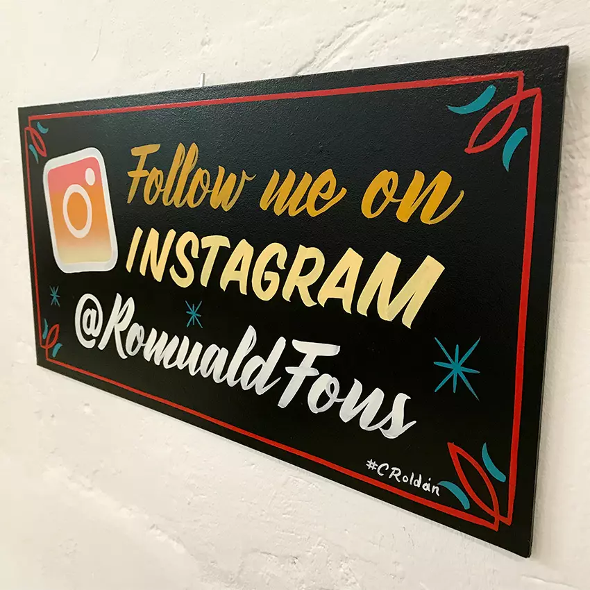 Pintado tradicionalmente, este rótulo personalizado decorará tu stand de feria o estudio, a la ves que conseguirá la mirada de nuevos followers. Ideal para tatuadores, barberos, artesanos y artistas en general.